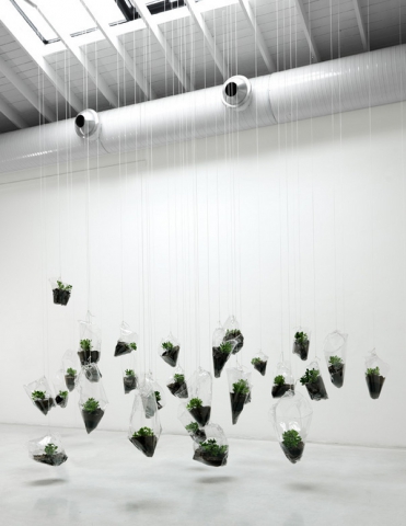 Con Mikala Dwyer e Alessandro Brighetti, che pure usano strumenti diversissimi, si tocca invece quella branca espressiva che intende ancora l’arte come mimesi, ma dove la mimesi non è tanto nelle forme della natura – anche quelle, per altro – quanto nei suoi processi: entrambi in maniera differente, infatti, inseriscono nelle loro opere il fattore tempo, sotto forma visibile, per quanto riguarda i video di Brighetti, e sotto forma concettuale, ma reale, per Dwyer, che mette in scena delle piantine sospese, veri organismi viventi che nascono, crescono, muoiono. Entrambi tuttavia riproducono il processo naturale, lo imitano (Brighetti) o lo forzano, evidenziandolo (Dwyer).