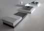 L'impiego dell'acciaio, molto riflettente, fa sì che la sua brillantezza mimi quella dell'acqua toccata dalla luce.