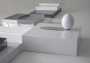 L’installazione traccia e indica un percorso lineare. Una scala ci conduce tra i pianeti che compongono l’universo femminile descrivendone il mistero, la dolcezza, la sensualità, la capacità di generare. L’uovo è uno dei pianeti di questo universo, un pianeta eccentrico soggetto a forze contrapposte che gli impediscono di essere una sfera e lo tengono in bilico sul bordo di un buco nero o di un ulteriore universo che lo hanno proiettato fin qui o lo attraggono per sottrarcelo. L’uovo rappresenta il sublime piacere in cui la mente e il corpo si fondono, esplodendo e poi implodendo, la magia della procreazione.