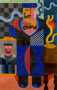 Tra le tarsie, accanto a La casa magica, va ricordato il frammento di Modernità del 1925 che rappresenta l’unica parte esistente del grande arazzo andato distrutto. L’opera, realizzata per l’Exposition Internationale des Arts Décoratifs et Industriels Modernes di Parigi nel 1925, era stata lodata dallo stesso Marinetti che non esitò ad affermare: “Depero audacemente in Modernità ha sconfinato e presentato nei finissimi panni colorati, nella perfetta tecnica del mosaico cucito, una visione macchinaria di treni, traversati da automobili in pazza corsa, su di una via azzurra in fuga che si prolunga nel cielo e si fonda nella scia di un rosso volante aeroplano.”