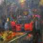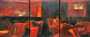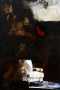 Astrattismo e matericità sono le caratteristiche della produzione più recente di Teresa Santinelli, i cui dipinti si sono distaccati dalla figurazione degli esordi, pur continuando a conservarne alcuni tratti. È la materia l’elemento fondamentale delle sue opere: non solo colore, ma anche terra, poliuretano e foglie d’oro, che coprono, e talvolta svelano, la pittura a olio sottostante, formata da gialli e rossi incupiti dalle sovrapposizioni materiche scure aggiunte in un secondo momento. I suoi lavori richiedono procedimenti lunghi e meditati, frutto di inizi, abbandoni e riprese continue, fino al completamento dell’opera. Quello che predilige nella sua pittura sono gli sfondi, che non sono semplici elementi decorativi, ma diventano protagonisti del quadro, alla stessa stregua dei personaggi o degli oggetti che vi possono comparire.