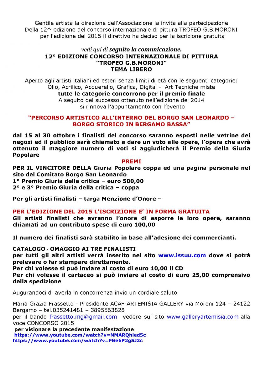 12^ EDIZIONE CONCORSO INTERNAZIONALE DI PITTURA - TROFEO G.B.MORONI 2015