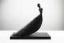 Le sue tipiche figure aeree, leggerissime, in bronzo, corda e anche vetro, prenderanno possesso dell’intero spazio della galleria. Caratterizzati dal fisico esile e dalle gambe lunghissime, i personaggi protagonisti dei lavori di Pinna sono senz’altro figli della poetica di Giacometti, alleggerita però della sua cupa drammaticità per acquisire una sorta di malinconico sorriso, uno sguardo tra l’ingenuo e il disincantato sulla realtà. Innamorato dei fumetti e di tutti i linguaggi capaci di parlare immediatamente al cuore della gente, l’artista riesce nella difficile impresa di comunicare emozioni, sentimenti, tratti psicologici senza il bisogno delle espressioni del volto (i visi dei suoi personaggi sono risolti in pochi tratti: la fronte e la linea del naso) ma con il solo incurvarsi pensoso di una schiena, o con l’inclinarsi del corpo in precarie situazioni di disequilibrio, lasciando nello spettatore un sottile senso di instabilità esistenziale.