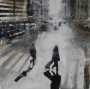 Una stesura pittorica caratterizzata da pennellate veloci che corrono lungo la tela, abbozzano le figure e muovono le auto, lasciando segni indelebili di un presente ormai passato.