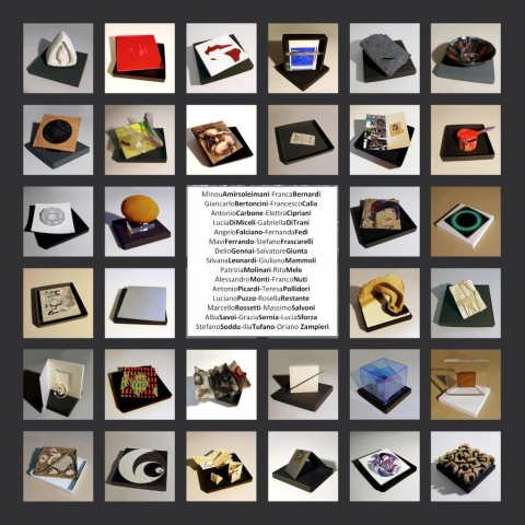 E da questo personalissimo e intimo archivio ha attinto ciascun artista, chi con grande coerenza formale rispetto al proprio percorso, chi con imprevedibilmente diversa connotazione linguistica, proponendo, o riproponendo, autentici ritrovamenti archeologici, oppure presentando opere nuove ma rappresentative comunque della propria ricerca artistica nel tempo, a costituire una visione globale articolata e dinamica. Ed ecco quindi, tutte di piccole dimensioni, opere di inusitata eleganza, di accattivante sapienza materica con accenti di poetico rigore, divagazioni stravaganti sospese tra gioco e ironia …una imaginerie collettiva, una armonica babele unificata da un più o meno esplicito rapporto con il tempo e la memoria …una foto ricordo di una esperienza ancora in corso, come evidenziato dal supporto-scatola in cui verrà esposto e poi sì custodito, ogni singolo prezioso reperto, ma per essere riproposto nelle tappe successive di un viaggio affascinante…