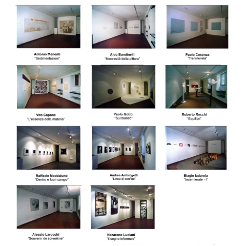L’Associazione culturale FUORI CENTRO rende visitabile, in questo quarto appuntamento di ARCHIVI APERTI, le mostre personali realizzate, nella sede espositiva Studio Arte Fuori Centro, nell’anno 2003 dagli artisti: Antonio Menenti, Aldo Bandinelli, Paolo Cosenza, Vito Capone, Paolo Gobbi, Roberto Rocchi, Raffaele Maddaluno, Andrea Ambrogetti, Biagio Iadarola, Alessio Larocchi, Nazareno Luciani
