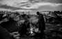 Esemplari sono le terribili scene di Idomeni, nella Penisola Balcanica, in territorio macedone, dove il flusso di migranti, dalla Siria, dall’Afghanistan e da altre terre devastate e in via di ulteriore devastazione, è stato bloccato. Ogni giorno i giornali, le tv, la radio, ne parlano. Qua, adesso, ci giungono questi scatti in diretta di Bledar Hasko, che è andato a documentarsi sul luogo. Egli ha, con finezza di intuito, distribuito l’insieme degli scatti lungo l’arco di un giorno, che naturalmente va dal mattino alla sera. Sotto tale aspetto, ci aspetteremmo di vedere in sequenza, dopo le pallide luci mattinali, l’accendersi della luce piena nel corso della giornata, fino al suo stemperarsi col tramonto. Invece, l’intera vicenda della giornata si assorbe in un triste pallore crepuscolare, sempre identico a sé stesso e al proprio squallore. Il giorno non c’è. come non c’è l’aurora, come non c’è la sera. C’è soltanto un giorno che non è giorno, c’è solo un ambiente straniato, irriconoscibile, fuori della storia e del bene e del male. E’ il limbo degli esseri umani, a cui si nega il diritto fondamentale di vivere e muoversi in un mondo umano. “Questi”, potremmo dire parafrasando Dante, “non hanno [neppure] speranza di morte”.