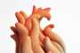 Le sculture in ceramica policroma di Claire Lindner (1982, Perpignan, Francia) danno voce a un immaginario che guarda al mondo naturale come a un insieme complesso ma profondamente connesso. Tra assonanze e rimandi continui con i fenomeni della realtà e le forme biologiche, le sue opere, giocate tra il familiare e il perturbante, mettono in scena un teatro della vita carico di desiderio e di passione, di eros e di thanatos. Anche l’uso del colore fatto dall’artista confluisce in questo orizzonte, accompagnando con leggeri trapassi cromatici la fluidità e la sinuosità delle forme ed evidenziando, con la sua opacità e porosità, l’aspetto naturale dei manufatti. In questo modo essi è come se relativizzassero la gestualità della pittura e la soggettività stessa dell’artista, per dichiarare invece una provenienza dal mondo della natura il meno possibile mediata. Per la mostra alla MAAB Gallery l’artista francese ha creato una serie di sculture a parete dalle forme sinuose e volanti che sembrano volersi liberare del peso della materia per librarsi nell’aria, con le loro forme serpentinate e fluide, portatrici di turbolenza e di desiderio. In queste creazioni ceramiche si scorge quindi la volontà di un artista che letteralmente tiene le mani in pasta, ma che allo stesso tempo usa la materia che plasma per liberarsi da se stessa e prendere le forme dell’aria o di una folata di vento, così come suggerire lo scorrere dell’acqua nelle rapide di un fiume. Come ha infatti dichiarato la stessa artista a proposito del proprio lavoro: “Un universo dove tutto è fuso insieme: interno ed esterno, liquido e solido, minerale e animale, vegetale e umano, come se tutto fosse fatto della stessa sostanza”. Nell’altra serie di opere concepite per la mostra milanese Claire Lindner si è ispirata a una forma che non ha direttamente a che fare con la natura, ma con l’opera dell’uomo e con l’attività artistica: il panneggio. Questo elemento decorativo, che percorre la storia dell’arte dall’antichità ad oggi, nelle opere di Claire Lindner non viene recepito nella sua funzione decorativa e accessoria, ma, sulla scorta dei saggi del filosofo e studioso di estetica francese Georges Didi-Huberman, è considerato come un simbolo legato al movimento stesso della vita, della sua natura metamorfica e mutevole, oltreché come vettore di emozioni e di connotazioni psicologiche. Anche in queste opere quindi, poste alla confluenza tra il mondo vegetale, animale, minerale e umano, le forme e il colore prendono vita per creare un valzer gioioso e fertile, inducendo allo stesso tempo una sensazione di estraneità e di soffusa inquietudine, di spaesamento e di mistero.