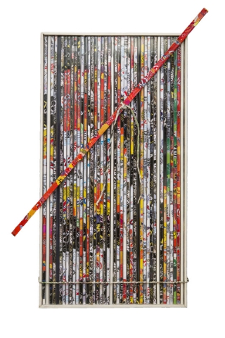 È un progetto espositivo giocato su due grandi cicli: da una parte quello realizzato con le riproduzioni delle lattine – tagliate a strisce sottili – in cui si perde il significato dell’oggetto d’origine per dar vita a una tavolozza di colori e scritte no sense; parole o lettere non correlate spingono lo spettatore a domandarsi “Che c’entra?” lasciando totale spazio interpretativo al ‘ruolo del lettore’ echiano. Dall’altra le Giacche (2016) – anch’esse realizzate con le medesime riproduzioni – che delineano corpi vuoti, individui qualunque, folle, noi tutti – geneticamente modificati dalla società di massa – che indossiamo una nuova pelle.