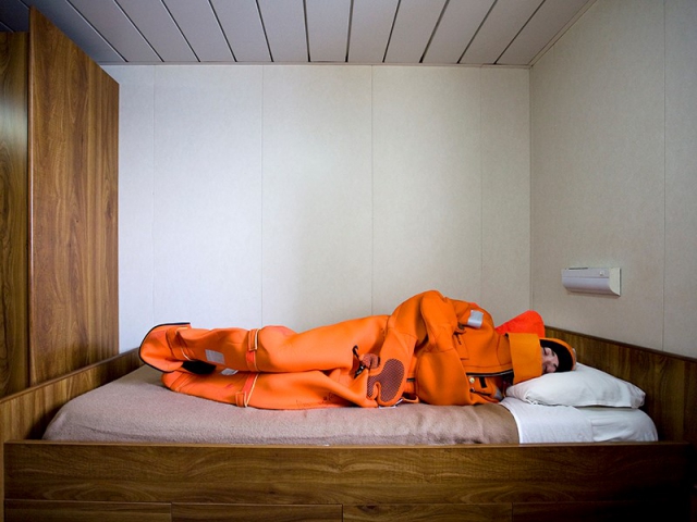 Unica donna in un equipaggio di ventisei persone e altri due passeggeri, sono partita da Le Havre a bordo della nave cargo Grande San Paolo e dopo diciotto giorni in mare sono sbarcata a Rio de Janeiro. Viaggiare su una nave cargo è un lavoro sulla perdita del controllo, una prova di resistenza. Il tempo si dilata e lo spazio si condensa in un determinato presente, che non è stato ieri e non sarà domani. Questa condizione di totale apertura permette di tuffarsi in una dimensione alterata, conturbante, inconscia.