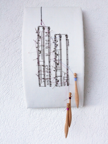 In questa esecuzione anomala, affidata agli strumenti artigianali del ricamo anziché a quelli musicali, emerge un'alterità sapiente quanto disconosciuta, capace di affermarsi con discrezione nelle stanze del Museo della Musica, di cui integra il percorso come un puntuale contrappunto storico, valorizzando i contributi di compositrici come, per citarne solo alcune, HiIdegard von Bingen, MaddaIena CasuIana, Francesca Caccini, Barbara Strozzi, IsabeIIa Leonarda, EIisabeth Jacquet de La Guerre, Fanny Hensel, Anna Bon.