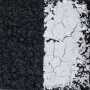 Elementi del corpo (il fustagno che viene usato per gli abiti, la candeggina che viene utilizzata per le pulizie domestiche) ed elementi urbani (l’asfalto ma anche i birilli stradali con cui Cazzaniga ha realizzato alcune sculture funzionali) ci raccontano la frequenza labile del mondo attraverso i modelli tecnici che l’artista stesso ha ideato. L’opera ci invita al giusto sforzo, richiama sempre altro e dissemina punti d’ipnosi scenica, come se somigliasse a qualcosa che non è mai quella data cosa. Cazzaniga fa slittare i codici per non cadere nel tranello didascalico della figurazione, creando immagini che nascono da una partenogenesi materica, da una crescita dentro l’informe della monocromia inquieta (il nero del fustagno, il grigio dell’asfalto). Il risultato si rivela per chiavi indiziarie; ci fa seguire piste che portano verso scelte private e spazi di condivisione, gioca per similitudini che sovrappongono ricordi e presente. Il quadro evoca l’espressione del tempo interiore, modulando la natura organica del materiale e la sua appartenenza al mondo narrato.