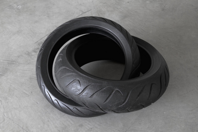 Le ruote non si mostrano più solo come un oggetto riconducibile alla realtà, ma la riflessione si vuole focalizzare sul senso e sulla percezione della materia: gli pneumatici non sono svuotati all’interno (come dovrebbero essere dei veri pneumatici) ma sono pieni, compatti, come fossero macine e ci mostrano la forza della materia in tutto il suo essere.