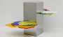Infine, negli spazi della Nuova Galleria Morone vengono presentate una ventina di sculture degli anni ‘60, anch’esse inedite in Italia, connotate da una vivace componente cromatica: forme elementari, cubi, piramidi, coni, parallelepipedi, in plexiglas, acciaio speculare, o laccato, o in ferro ossidato. Volumi tagliati, spostati, messi in disequilibrio, ma anche corrotti da sovrapposizioni, escrescenze, figure improprie che mettono in dubbio la semplicità e la purezza delle forme cui si aggrappano. Un ragionamento critico sulla precarietà, che mette in allarme riguardo all’entusiastica posizione condivisa in quegli anni a proposito di un incipiente mondo tecnologico. In questi lavori si unisce l’ammirazione di Squatriti per l’arte essenziale delle Avanguardie suprematiste e costruttiviste, con lo spirito dissacrante di matrice Pop che si respirava in quegli anni, da lei interpretato in modo personale, senza rifarsi a nessuno degli stilemi correnti, precorrendo di quasi cinquant’anni alcune ricerche internazionali successive.