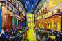 Poi l'attenzione di Fernando Mangone si sposta gradualmente ai secoli successivi: al Seicento, al settecento e all'ottocento per arrivare fino al Novecento, al periodo che anticipa l'arte contemporanea, i nostri complessi e travagliati giorni. Allora, con forte e sentita partecipazione, il nostro artista offre allo sguardo degli sbigottiti spettatori le bellissime immagini di Balla e Boccioni, di Lucio Fontana, Marcel Duchamp, Savinio e Andy Warhol in un turbinio di luci, colori e movimento che vuole essere richiamo alla vita, atteso e giustificato annuncio del nuovo che avanza, urgente richiesta di novità e cambiamento. Si entra poi nel “Paesaggio urbano”, nelle grandi capitali europee dominate dal caos metropolitano e dalla geometria delle moderne architetture per giungere fino alle stupende città italiane: Roma, Milano, Venezia, Firenze ecc. E proprio su Firenze e sulla meravigliosa Toscana, Fernando Mangone ferma la sua attenzione: sentito omaggio ad una terra che ama e che ha sempre amato perchè qui ha completato la sua formazione artistica, qui ha mosso i suoi primi passi in campo artistico, qui ha vissuto e coltivato amicizie e collaborazioni. Allora nella vasta preview di Mangone non possono certamente mancare le immagini di Piazza della Signoria, degli Uffizi, di Palazzo Vecchio e poi Pisa con la famosa Piazza dei Miracoli, Siena, Arezzo, Livorno e Pietrasanta, la città che lo ospita. Ma non mancano neppure immagini dei caratteristici e silenziosi borghi medioevali dell'entroterra toscano pieni di fascino e di bellezze naturali e artistiche. Infine, è bene ricordarlo, la natura e gli animali, insieme al mito e alla storia, sono stati e continuano ad esserlo, la forza trainante di ogni sua opera, la principale fonte d'ispirazione per raccontare la vita e il territorio. In questa importante preview Fernando Mangone richiama allora la grande tematica ambientale con un sentito omaggio agli animali. Si parte dall'orso polare, fiero e combattente animale che oggi vive in condizioni di forte disagio a causa del surriscaldamento climatico e lo scioglimento dei ghiacciai e si prosegue poi con il cinghiale e il lupo per arrivare fino al gufo e alla civetta, signori del silenzio e della notte, e poi il volo maestoso dell'aquila, la volpe, il tasso e il silenzioso e inafferabile ramarro.