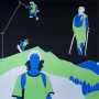 «Dopo anni in cui i personaggi erano disposti su più livelli come tasselli di un ipotetico rebus – scrive Chiara Serri – e il successivo accentramento della figura, che nella serie “Stand your ground” diventa fulcro della visione con corpi di grande possanza, riproposti anche nei lavori a tema sportivo, ora l’uomo è immerso nel paesaggio, in una natura sublime, a tratti soffocante. I soggetti di questa nuova produzione sono prevalentemente adolescenti, intenti a camminare, a saltare, a partire zaino in spalla, a fare qualcosa che, tuttavia, non stanno ancora facendo e probabilmente non faranno mai. Ciò che interessa all’autore è l’attimo di sospensione, l’attesa, il tuffo che congela la visione, portando il visitatore a fermarsi, a riflettere, a mettere in dubbio la lettura più semplice, lineare, ciò che di fatto ci si aspetterebbe di vedere. Uno spazio cerniera tra realtà ed immaginazione, in cui arrivano solo pezzi di mondo, o meglio, pezzi di un mondo a pezzi: porzioni di corpi e frammenti di paesaggio combinati tra loro in un equilibrio precario, dove il dato reale, spesso lacunoso, è sorretto dall’invenzione».