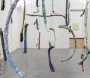Le sculture, innesto di oggetti o frammenti all’interno di materia informe, si relazionano con l’osservatore, sospese e fissate con catene, cavi elettrici, fili d’acciaio a una struttura metallica e ricordano parentesi, incognite, simboli matematici all’interno di un’ipotetica “griglia cartesiana”. Si tratta di un ambiente senza pareti, al cui interno si muovono alcune coordinate, aperte, eterogenee, indefinite a comporre un insieme armonico, che varia in base allo spazio.
