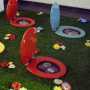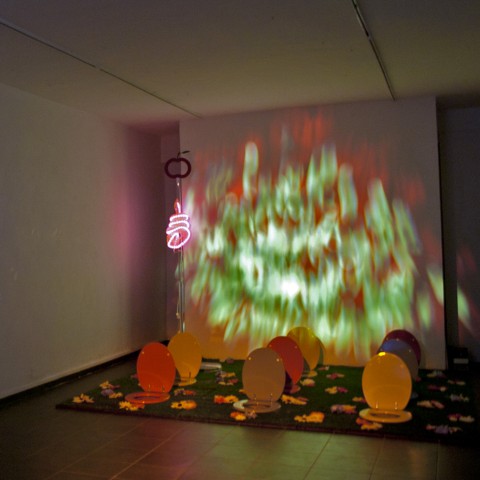 Nato dall’intento di coniugare l’inconfondibile cifra pittorica, che mescola colori accesi e immagini sintetiche, con la necessità di rapportarsi allo spazio, Il giardino delle delizie inscena i lati nascosti del singolo e della collettività, i tormenti della storia e gli stereotipi del presente, ingredienti essenziali per mettere a nudo i fallimenti della nostra società, trasformando il dramma in farsa e viceversa. Oscillando con sagacia tra la tensione verso l’espiazione di una colpa e l’insopprimibile impulso al raggiungimento di un piacere, ottenuto anche a costo della trasgressione, dosa cinismo e ironia, raggiungendo accenti di graffiante irriverenza.