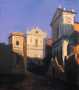 Nella descrizione dell’elemento urbano l’interesse indugia sui volumi e sulla matericità della luce (Alba romana, Villa Medici), sul significato dei vuoti e dei pieni (Notturno all’Esquilino), sulle geometrie umane frutto di secolare stratificazione (Prenestina); ma anche, di rimando, sull’apertura repentina di un ritaglio di cielo dietro una facciata monumentale (Capriccio romano), o sul cadenzato allontanarsi e riavvicinarsi dell’occhio che, come su un’altalena, si dondola sulle cupole dorate (Dal Pincio, Luci del tramonto) per poi scendere fra le imprevedibili prospettive della città (Sotto Colle Oppio).