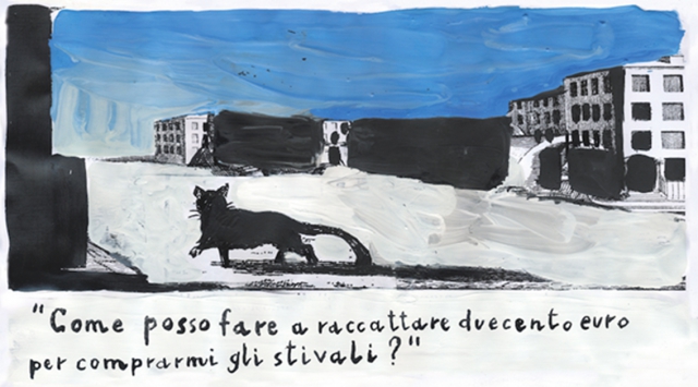 Sarà presentata inoltre una nuova opera, la sequenza di disegni realizzati per illustrare il racconto inedito di Ugo Cornia dal titolo Favola del gattino che voleva diventare il gatto con gli stivali, che sarà oggetto di un libro d’artista pubblicato in occasione della mostra.