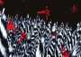 In questa logica il secondo piano della mostra è occupato interamente da Neither snow nor meteor showers, una videoinstallazione del 2010 che si espande per oltre dieci metri. Come suggerisce il titolo, non si tratta né di un paesaggio né di un fenomeno atmosferico, ma ricorda, piuttosto, un luogo germinale dove si evocano montagne con pini innevati. In realtà, il lavoro prende spunto da un’immagine di vitamina B12 che, attraverso ingrandimenti esponenziali, assume un aspetto paradossalmente naturalistico dove il segno animato si deposita e si disgrega.