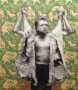 In tre dipinti il tema dell’omaggio è dichiarato già nel titolo, come nel caso di “Omaggio a Bacon” di Gaetano Zampogna, che recentemente ha tenuto una personale alla Fondazione Umberto Mastroianni. Ispirato alla celebre fotografia di John Deakin, tra le trame di un tessuto a fondo verde con stampe di elefanti, emerge - in forte contrasto - la sfocata e drammatica figura in bianco e nero di Francis Bacon. Il dipinto fa parte del ciclo “Le macellerie” a cui Zampogna sta lavorando dal 2015. Bacon stesso affermava di essere stato sempre colpito dalle immagini di mattatoi e di carne macellata: “Che altro siamo, se non potenziali carcasse? Quando entro in una macelleria, mi meraviglio sempre di non essere io appeso lì, al posto dell’animale”.
