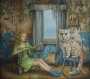 «L’atmosfera che ho voluto esprimere nelle mie opere è in bilico tra realtà e sogno – racconta l’artista –, molto vicina a un bestiario medievale “addomesticato” e addolcito tra le mura domestiche, laddove le protagoniste sono circondate da animali, come in “Mediterranea”, o dove un cervo riceve un bagno mentre guarda da una finestra che sembra un dipinto appeso a un muro come in “Prima della festa”. Le protagoniste, fanciulle o bambine, sono creature pensose che nascondono nel loro mondo, apparentemente fiabesco, il sogno tradito dell’umanità di questo secolo e un senso di angoscia e precarietà».