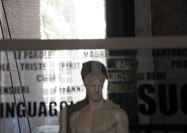 Abbiamo invitato Luigi Auriemma, la cui arte è da sempre caratterizzata dalla compresenza di immagine e parola, a intraprendere un confronto con il Doriforo, tradizionalmente ritenuto canone policleteo fatto statua. Sapevamo che con questa celebre opera, rinvenuta nella “Palestra Sannitica” di Pompei quasi allo scadere del ‘700, l’artista