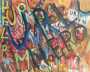 Nell’artista riaffiora la sinestesia di Quasimodo, in quella memoria ritrova l’oggi, le sue sensazioni, le sue emozioni e una società che sembra aver perduto il senno: tutto viene furiosamente fissato sulle tele dove il colore pare innalzarsi a coprire l’orrore.