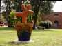 La giovane artista per questa occasione ha realizzato la scultura monumentale Genesis 2 il cui soggetto è un individuo che emerge da un vaso da giardino a evocare la nascita dell’uomo dal grembo della terra madre e quindi il suo legame indissolubile con essa. A tale proposito Marica Moro, nel processo di creazione dell’opera, utilizza elementi naturali come l’argilla, l’acqua e la resina nei quali il colore assume un ruolo caratterizzante: il blu per la base del vaso fa riferimento all’acqua - elemento da cui trae origine la vita, - è unito al rosso e al marrone - colori legati alla terra - e al giallo e al verde, toni che l’artista associa alla vita. L’uomo è reso con pigmenti giallo ocra, che richiamano la luce, il sole e il movimento a indicare l’attività umana, il suo legame con la natura e il suo ruolo fondamentale nell’evoluzione della società e dell’architettura.