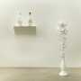 Ogni singolo elemento vive di vita propia e concorre al tempo stesso a disegnare un universo di forme che dialogano, alternando i toni dei bianchi più luminosi degli smalti e delle resine, ai toni bruniti propri della terracotta.