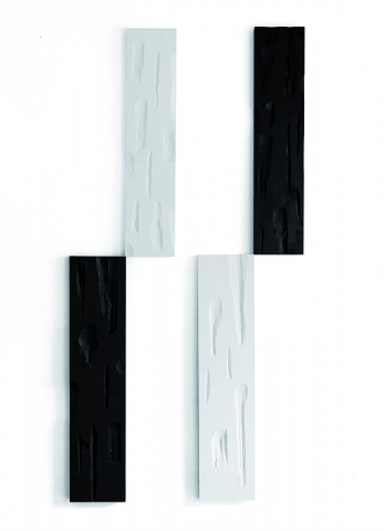 Bianchi e neri che nella loro essenzialità cromatica e rigore compositivo, riempiono lo spazio della galleria, invitando a una riflessione sulle relazioni tra gli equilibri fragili, ricercati e sottili delle connessioni fra le parti. Allegoria che non si presta a una sola interpretazione ma invita a considerare la complessità dell’agire. Come ben descritto nel testo di Mario de Candia che accompagna la mostra “Uno degli elementi oggettivi primari del discorso di Paolo Di Capua si può trovare sia nel costante prevalere di una disposizione mentale governata da una sorta di fiducia-sfiducia nella percezione dei sensi, sia in una prospettiva intellettuale radicata nel contesto visivo della realtà esterna, ma ribaltata verso un’interiorità.”