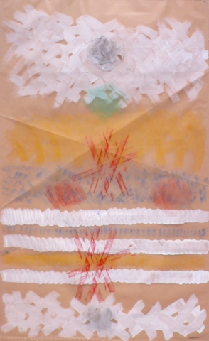 L’uso del segno colorato libero e gestuale, realizzato con pastelli e unito a sezioni trattate ancora con incisione e piegatura, delimitanti immagini geometriche come in lievitazione, viene esteso anche, da Gubinelli, al cartoncino, con effetto di profonda e sottile suggestione lirica.