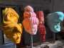 L’artista che per alcuni mesi soggiornerà a Napoli, avrà sicuramente molte risposte a questa domanda. Alcune delle opere, come per esempio il Re Mida o Crono, riflettono pienamente la drammaticità della mitologia antica; altre invece, come per esempio Petulatia, ne esprimono l’ironia e l’astuzia. E’ dall’intenso uso cromatico basato sui colori dell’affresco e all’assoluta libertà formale con cui l’artista le ha modellate, che si entra in contatto con ognuno di questi volti. Potrebbero sembrare sculture di pietra, in realtà l’artista le ha modellate in gesso patinato a calce. Stilisticamente si passa dall’antichità alla modernità senza soluzione di continuità, si gira intorno ad ogni testa per scoprirne la ricchezza dell’acconciatura o della nuca, disegnata con incavature, strisce e linee di grande bellezza. Infatti, la parte posteriore della testa ha la stessa rilevanza del volto: montate su una piattaforma di alluminio spazzolato e grazie ad una maniglia posizionata sull’asta, gira di 360 gradi intorno a se stessa, riflettendo la propria immagine da ogni prospettiva.