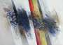 I suoi soggetti sembrano a volte richiamare frammenti architettonici, sintesi di paesaggi urbani e/o industriali, mappe e visioni aeree. Sono, ancora, costruzioni geometriche fatte di piani sovrapposti, di linee e forme che, però, non seguono mai le regole precise e rigorose dell’Astrattismo Geometrico. Salvatore Alessi, infatti, seppure affascinato dalle Avanguardie Storiche, si affranca da esse proprio per la sua straordinaria capacità di essere libero e autonomo, personale ed autentico, direi innovativo pur nelle sua compostezza e nel suo rigore formale. Così, molto spesso, nelle sue opere la linea e la costruzione geometrica sembrano di colpo interrompersi dando luogo ad una interessante ed imprevedibile metamorfosi segnica che si trasforma in riflessione cromatica di derivazione quasi informale. Allora il suo colore diventa morbido e pastoso e sugli sfondi, spesso dominati dai rossi e dai blu, si aprono improvvisi squarci di luce, fluttuanti e morbide pennellate, spontanee ed eleganti cascate cromatiche. In questi casi le sue costruzioni si vestono di leggerezza e delicate trasparenze, si fanno raffinate invenzioni della mente, richiamano assorte e magiche atmosfere. Artista indubbiamente molto motivato, Salvatore Alessi riesce a trovare e ricevere input da tutto ciò che lo circonda, da ogni minimo dettaglio, da particolari impercettibili alla comune visione. Grande osservatore, il suo occhio funziona come il grandangolo di una macchina fotografica: avvicina cose ed oggetti, annota e registra, poi interpreta, modifica e sintetizza a piacere seguendo l’istinto, la creatività, l’estro e l’emozione del momento.