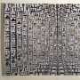 Da anni impegnata nella proposizione di xerografie moltiplicate all’infinito, alla scrittura, tema conduttore di questa mostra, Alba Savoi affida il gioco modulare che scompone-ricompone le scritte, restituendole in scale dimensionali, nello spazio delimitato dell’opera, reiteratamente miniaturizzate o ingigantite in sequenze illimitate. La scrittura fa dunque da ponte tra il passato e il presente, nel cui ambito di riflessione l’artista, volendo osservare un iter cronologico progressivo fissa l’inizio della sua ricerca con la stele di Rosetta – pietra miliare nella decodifica della lingua dei Faraoni attraverso l’analisi comparativa tra una scritta graffita in egiziano ed una in greco -, e sul calendario di Veroli: calendario di epoca augustea sul quale venivano segnati i giorni propizi allo Stato, ai commerci e ad altro ancora, e i giorni nefasti, durante i quali, per la loro negatività, era opportuno astenersi dall’agire.