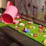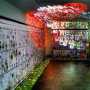 La catarsi di San Michele, contraltare veneziano ed altrettanto crepuscolare della böckliniana Isola dei morti avviene attraverso l’esplosione gioiosa, estranea al senso della misura, del prato verde smaccatamente finto, che punteggiato di sovradimensionati e coloratissimi fiori altrettanto gilardianamente finti, perimetra come un tappeto i tre lati dell’installazione di Sanmicheleinisola. Rigoglioso nel denunciare la sua natura spudoratamente artificiale, il prato e i fiori richiamano alla mente la funzione energetica e vitalistica dell’acqua , a cui alludono annaffiatoi elogiativi di un kitsh coloratissimo e infiorettato, paradossali nella loro assoluta e meravigliosa incongruenza al luogo, disposti molto ironicamente sul fondo dell’installazione, sorretti da una minimale stuttura in ferro.