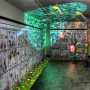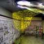La composta malinconia del grigiore marmoreo del luogo esorcizza la sua destinazione di ultima dimora in un ironico e caleidoscopico esercizio neo-pop, tangente certe esperienze, tese a scuotere gli animi dei presenti, caratteristiche del teatro e dei films surrealisti.