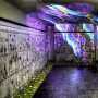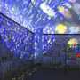 Queste musiche ispirate all’acqua di Parravicini, e la voce recitante dell’artista che in triplice tonalità gli si accorda, stabiliscono insieme la sequenza di immagini da proiettare, in scansione incrociata,sui tre muri di lapidi dell’installazione, filtrandole attraverso il tremolìo vibrante di un effetto acqua, che mano a mano, colorandosi di giallo, magenta, viola e verde annulla il grigiore marmoreo e cimiteriale del luogo. Accesa così dai vivacissimi colori delle proiezioni, Sanmicheleinisola si trasforma in un’esperienza polisensoriale, capace di acquisire a sé anche i “rumori e gli odori che attraversano l’isola”.