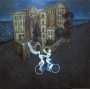 Mauro Bellucci (Roma 1963) richiama l’attenzione sul tema dell’inquinamento aggredendo lo spettatore con le sue ciminiere, attraenti negli effetti cromatici ottenuti dal sapiente impiego dei colori ad olio e delle resine industriali. Enrico Benaglia (Roma 1938) ci accompagna in ambientazioni surreali dove i palazzi, delicatamente appoggiati su spiagge deserte, fanno da quinta a romantiche fughe di esili figure di carta. Mario Ferrante (Roma 1957) utilizza un registro impressionista contemporaneo per raccontare il continuo movimento di malinconici paesaggi e di persone in cerca di ascolto. Franco Fortunato (Roma 1946) collega la sua seducente tavolozza alle raffinate architetture rinascimentali di città calate in atmosfere metafisiche. Franco Marzilli (Roma 1934 – Poggio Mirteto 2010) impasta le sue morbide vernici per creare superfici ruvide dove ferma scorci fuori da ogni tempo. Piero Mascetti (Roma 1963), per mezzo di una partitura pittorica di forte impianto gestuale e informale, si concentra sulle sensazioni suggerite da situazioni, per i più quasi invisibili ed insignificanti, in un continuo e rapido evolvere. Sigfrido Oliva (Messina 1942) dichiara il suo amore per Roma con opere dove sembra voglia dipingere l’aria tanto sono leggere e impalpabili le velature di colore che sceglie. Carlo Roselli (Milano 1939) crea città ideali dove la struttura del paesaggio, ritratto in una sorta di visione aerea, rimanda ad una dimensione onirica i diversi elementi dei luoghi vissuti. Cynthia Segato (Roma 1958) porta la città in un infinito gioco dove sirene e ranocchi, fiabe e filastrocche rivivono negli spazi astronomici che le sono cari. Mariarosaria Stigliano (Taranto 1973) dipinge città dove non c’è la ricerca di una sicurezza ma la presa di coscienza della vita come scoperta di momenti in grado di riscaldarci e ricondurci alla comprensione del nostro essere più profondo.