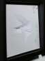 “L’artista parte da un’ esperienza di lutto appresa casualmente via Facebook. Costruisce una sequenza di lavori legati all’immagine guida del trauma: la schermata di Google Maps bloccata sulla sua abitazione mentre nella porzione di cielo appare un elemento determinante. Lo stesso è elaborato dall’artista in forma pittorica e in intagli su carta. La banalità e la pericolosità dello screenshot diventano legame tra la fisicità dei gesti del dipingere, dell’incidere con il taglierino e la virtualità del web. Reale e virtuale diventano un gioco di specchi che amplifica le immagini e le fanno sembrare in attesa di un’evoluzione. Nella sequenza per Amy-d Arte Spazio il tema del volo dal rosa shock vira verso il bianco con la serie Filling the sky_(white perlux 8300): il lutto viene elaborato, il rito di cordoglio si compie come se Valentina Colella dopo 5 anni riuscisse a dare un senso all’assenza attraverso l’opera Quello che resta. Il vuoto torna ad essere tale, ma trova una spiegazione.” (Valerio Dehò)