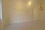 I lavori di Yumiko Kimura si offrono allo spazio e alla luce semplicemente, nella purezza e nel rigore delle forme. Akiko Fujimoto agisce invece su base emotiva e, con un procedimento istintivo e viscerale ci mostra oggetti “altri”, entità fragili, persino buffe, avulse da qualsiasi possibile contesto, aggrappate all’invisibile e precariamente galleggianti nell’etere. Quiete presenze tra il reperto biologico e il corpo alieno, questi surreali, annaspanti organismi popolano con effetto straniante lo spazio della galleria disorientando l’osservatore, attratto e sconcertato dalla vulnerabilità e dal bisogno di protezione che comunicano, proprio perché indifesi come la natura. I lavori di Akiko Fujimoto sono earth-friendly e biodegradabili e questa circolarità è il cardine principale della sua filosofia artistica. Dal 2002 intitola le sue serie Life work, termine che, a seconda venga scritto con o senza la “s” finale assume diversi significati: “il lavoro di tutta una vita”, “l’insieme dei lavori della vita” ma anche “lavori di vita”, nel senso di “viventi” in quanto organici e naturali.